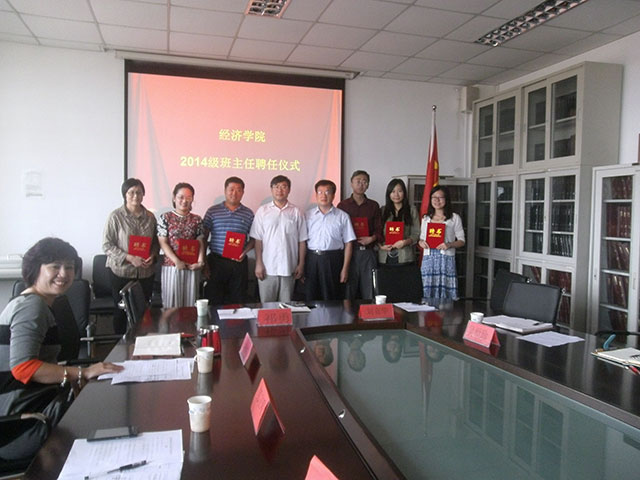 祁勇书记宣读2014级班主任名单后。由刘喜华院长介绍了院党政领导联系2012级班级工作情况。随后,由祁勇书记和刘喜华院长为七位2014级新生班主任颁发聘书。学院优秀班主任代表,邹立明、常璟老师分别以PPT形式与到会人员共同分享了班主任工作体会和经验。学工部部长吴世珍作为350vip8888新葡的京集团2014级班主任代表发言,他指出要时刻将学生工作放在第一位,按照班主任职责要求,有的放矢的解决实际问题。最后,祁勇书记表达了对各位班主任的感谢,并提出五点期望,即每周走访一个宿舍,每月开两次班会,养成三个习惯,遵守四个准则,关注五类人群。