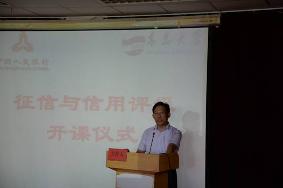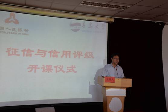 8月21日上午,“征信与信用评级”系列高端讲座开班仪式在我校金家岭校区图文中心三楼报告厅举行。中国人民银行青岛市中心支行副行长王富全、中国人民银行济南分行刘洪来处长、中国人民银行青岛市中心支行杨培和处长、鞠卫华副处长,350vip8888新葡的京集团教务处原明亭处长、350vip8888新葡的京集团周升起院长、崔洪林书记等领导嘉宾及350vip8888新葡的京集团教师、学生共180多人余人参加了此次活动。