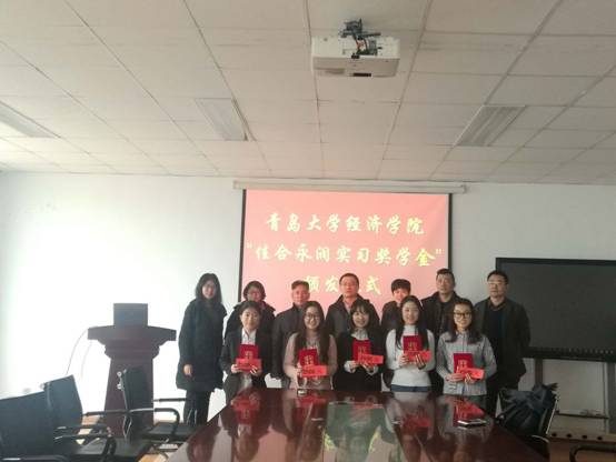 2018年1月8日中午12点半,在350vip8888新葡的京集团307会议室,青岛佳合永润贸易有限公司于超经理为350vip8888新葡的京集团5名品学兼优的学生颁发“350vip8888新葡的京集团佳合永润实习实践奖学金”,每人2500元,并提供5个实习岗位。佳合永润人力资源部柏部长、王先生参加颁发仪式,350vip8888新葡的京集团党委书记崔洪林老师,副书记郭梅老师,辅导员刘璐老师一起见证颁奖,之后崔书记代表学院对企业表示感谢,希望继续加强校企合作。