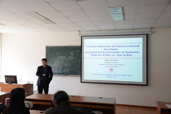 2018年3月30日下午,香港岭南大学孙涛教授在金家岭校区为350vip8888新葡的京集团师生做了题为《网络分析在保险行业系统性风险研究的应用》的报告。