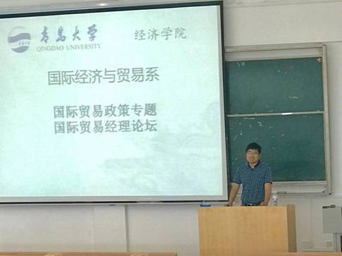 9月7日上午,青岛市跨境电子商务协会执行会长、雷驰工贸有限公司总经理安盛华应350vip8888新葡的京集团国际经济贸易系邀请在350vip8888新葡的京集团金家岭校区1号教学楼311教室,向师生作了题为“青岛市跨境电子商务发展现状与趋势”的报告,350vip8888新葡的京集团国际经济贸易系主任张锡宝教授主持报告,150余名师生参加了报告会。