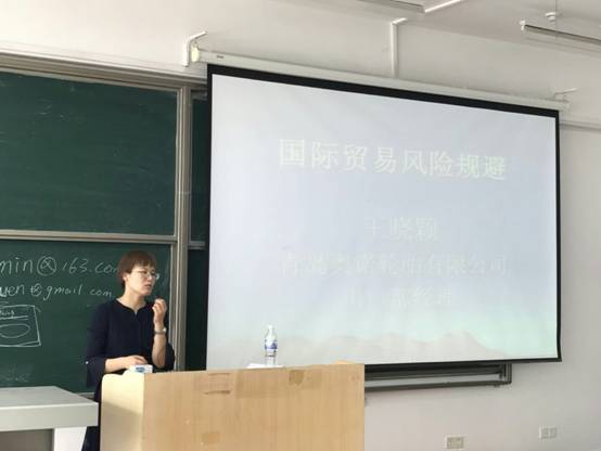 此次报告中,王晓颖总经理向各位老师和学生介绍了从事外贸行业容易遇到的一些“坑”,通过结合本人从事十年轮胎出口业务的工作经验,向全体师生生动地讲述了外贸行业中常见的风险与规避方案。