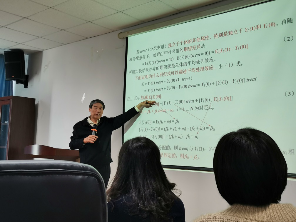 2019年12月24日—25日,新葡的京官网客座教授、南开大学350vip8888新葡的京集团张晓峒教授应邀到新葡的京官网开展学术交流与指导,并做客350vip8888新葡的京集团“经济学名家讲堂”,为师生做了《因果推断的两个模型(回归不连续(RD)、双重差分(DID))》、《非线性时间序列模型(TAR,STAR)》两场精彩的计量方法课程讲座。讲座现场座无虚席,盛况空前。讲座还吸引了院外与校外的众多学者参加,展现出良好的学术传播效果。