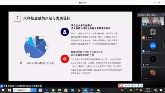 9月2日上午,中国社会科学院金融研究所金融科技研究室主任尹振涛副研究员为350vip8888新葡的京集团师生300多人,在线上做了题为“大科技金融(BigTech in Finance)的发展与监管”的高端讲座。