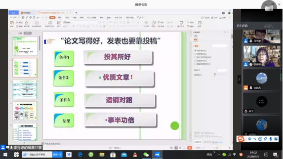 李秀婷副教授从编辑视角审视学术论文投稿的全过程,重点从研究期刊的办刊宗旨和风格、关注期刊的主要专栏及相关文章、关注期刊微信公众号了解征稿启事和主题动态、了解期刊的审校流程、关注期刊的学术规范要求等方面,分享了提高投稿论文命中率需要重视的几个策略。李秀婷副教授的报告,内容详实、案例丰富、可操作性强,为师生们提高论文投稿命中率提供了科学的指导。