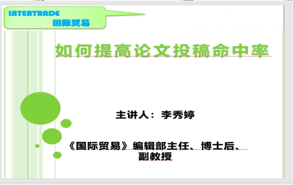 9月2日晚上7点,《国际贸易》杂志社编辑部主任李秀婷副教授为350vip8888新葡的京集团师生200多人,在线上做了主题为“如何提高投稿命中率?”的高端讲座。