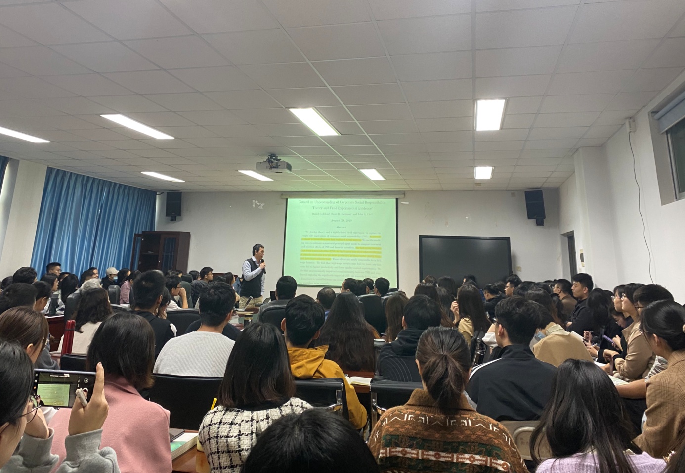 2020年11月19日上午,山东大学陈强教授应邀到新葡的京官网开展学术交流与指导,并做客350vip8888新葡的京集团“经济学名家讲堂”,在金家岭校区西院办公楼307会议室为师生做了《随机实验与双重差分法》的精彩学术报告。350vip8888新葡的京集团的部分教师和百余名学生参加了此次学术交流。