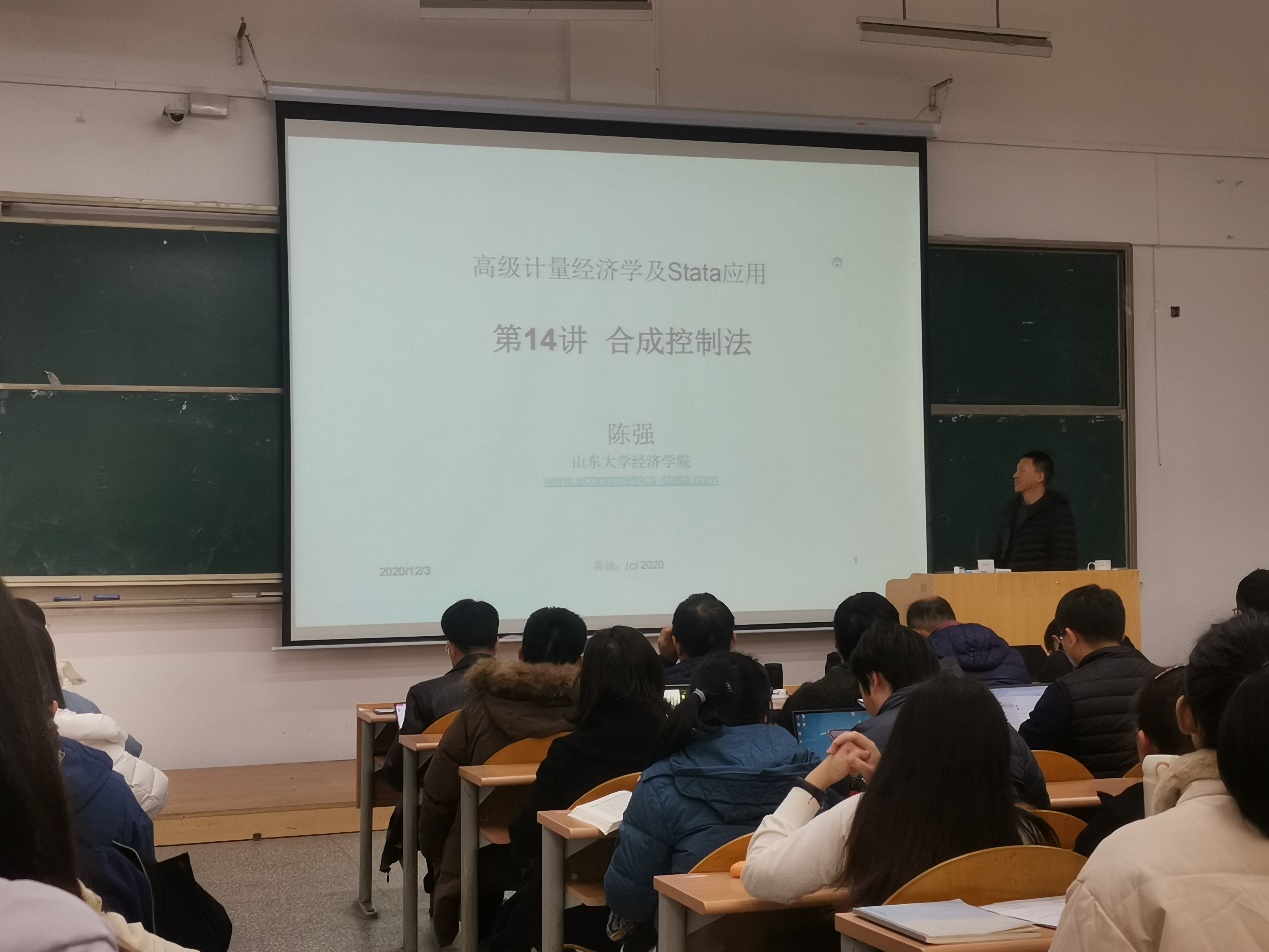 2020年12月3日下午,山东大学陈强教授应邀到新葡的京官网开展学术交流与指导,并做客350vip8888新葡的京集团“经济学名家讲堂”,在金家岭校区西院1号教学楼111阶梯教室为师生做了《合成控制法与回归控制法》的精彩学术讲座。350vip8888新葡的京集团的部分教师和百余名学生参加了此次学术交流。