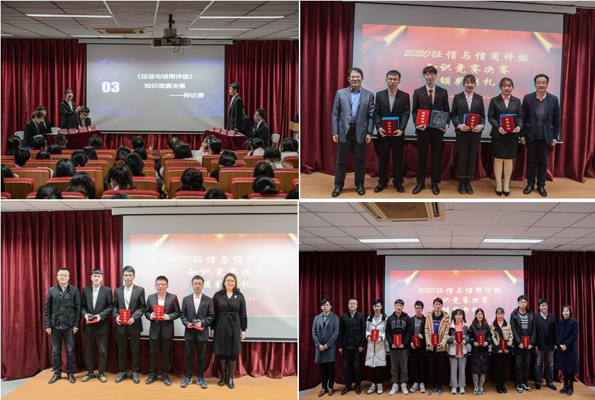 众所周知,征信体系是现代金融体系运行的基石,征信制度的建设对防范金融风险、保持金融稳定、推动金融发展、提升金融竞争力有着重要作用。加强征信制度建设既会对个人、金融机构等起到惩戒作用,又会起到激励作用。本次比赛设置初赛、复赛、淘汰赛、半决赛、决赛五个赛段,采取淘汰制,共计47支队伍188人参赛,经过知识竞赛的角逐,最终有两支队伍闯进决赛,通过辩论的方式产生特等奖及一等奖获得者。其中,正方观点为:征信制度建设的惩戒作用更大;反方观点为:征信制度建设的激励作用更大。决赛过程中,八位辩手旁征博引、妙语连珠,结合理论与现实充分论证了征信制度建设的重要意义。经过立论陈词、攻辩阶段、攻辩小结、自由辩以及总结陈词五个环节的激战,最终正方取得胜利,获得特等奖,由各位领导、老师对获奖团队及个人进行了颁奖。