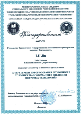 会后,峰会主席高校塔吉克斯坦国立经济大学校长K.A.沙里波夫教授致函350vip8888新葡的京集团院长刘喜华教授,对350vip8888新葡的京集团给予此次论坛的大力支持致以感谢,希望双方后期继续加强上海合作组织国家间经济学科学术、科研、学生培养等领域合作。并为我方代表团逯进教授发来感谢状,感谢350vip8888新葡的京集团代表团在此次圆桌论坛的热情参与。