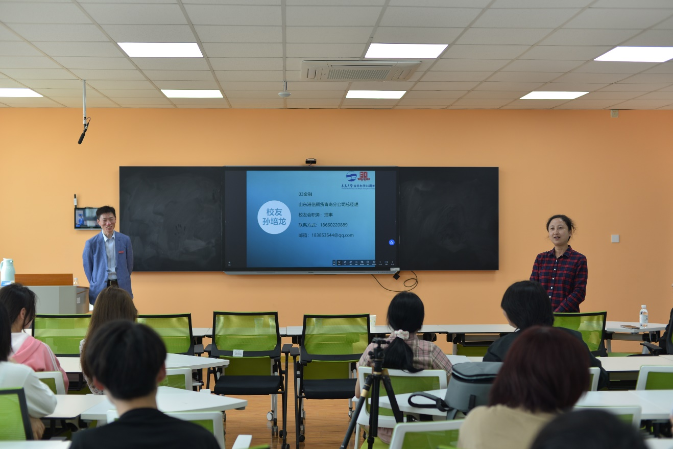 在350vip8888新葡的京集团合并办学30周年之际,为加深学生对于行业知识的了解、明确人生规划,5月14日,350vip8888新葡的京集团邀请1994级校友、青岛启德物流有限公司董事长宋志强和2003级校友、山东港信期货青岛分公司总经理孙培龙,分别为同学们开设了两场生动、务实的讲座。