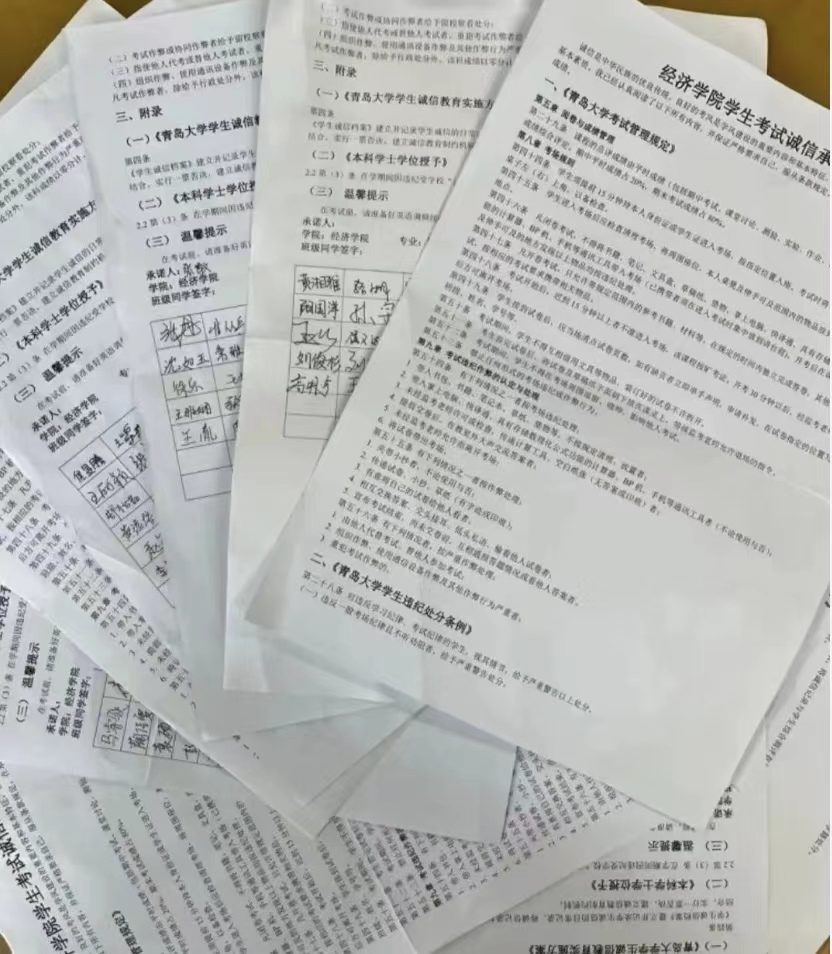 为加强350vip8888新葡的京集团学风建设,强化诚信教育和法律法规、校规校纪教育,增强学生“以诚信守纪为荣,以考试作弊为耻”的观念,2023年6月7日至2023年6月17日,350vip8888新葡的京集团学工办组织各年级开展考风考纪专题教育活动。各班组织召开以考风考纪为主题的教育班会,各年级辅导员向同学们传达了诚信考试重要意义,并以真实考试违纪处理方案作为警示,结合具体案例详细讲解学院有关违纪处分的各项制度规定并集体签署《350vip8888新葡的京集团学生考试诚信承诺书》,使同学们深刻认识到考试作弊的危害及严重后果,向同学们提出了诚信考试、实事求是的切实要求。