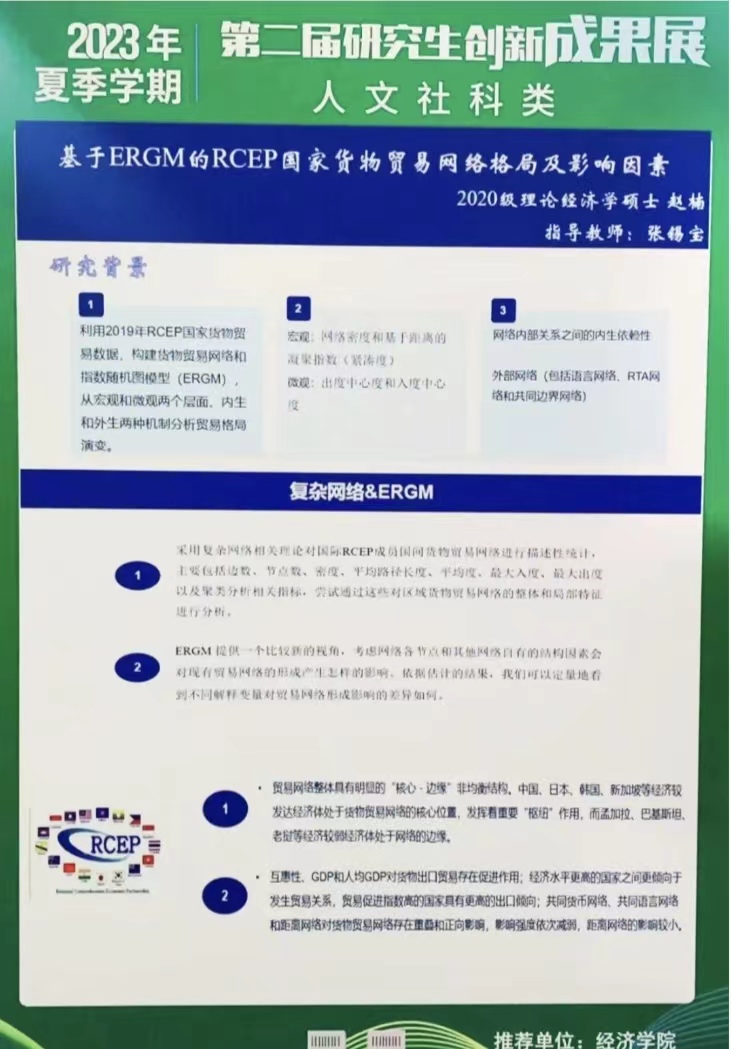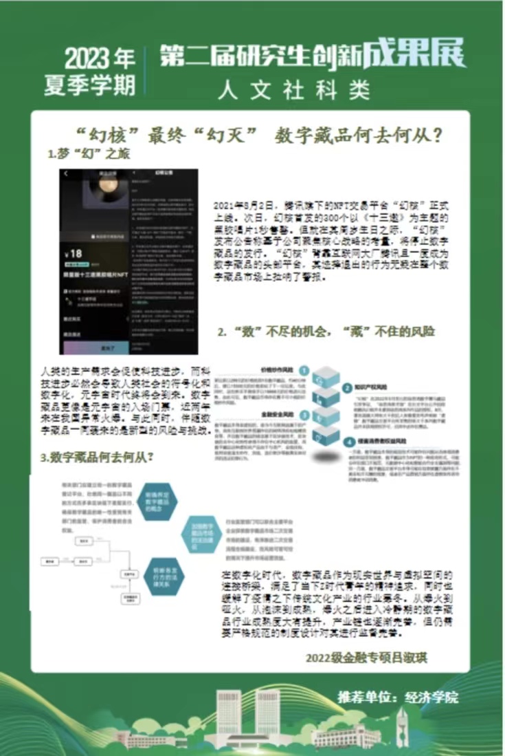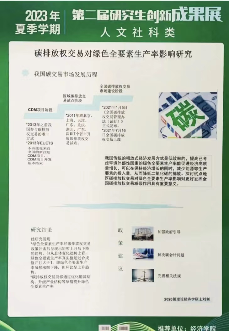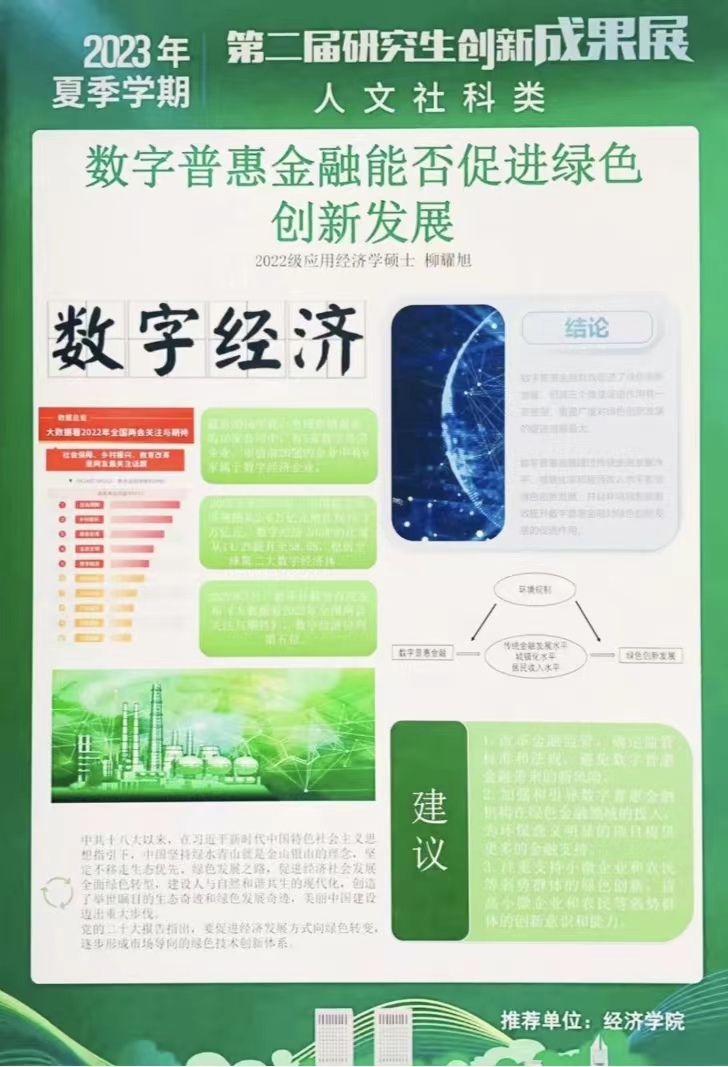 会后评审团专家从350vip8888新葡的京集团研究生20余项代表性创新成果中评出了“校优秀学术海报奖”和“院优秀学术海报奖”。其中,《长期护理保险对中老年人心理健康的影响》和《基于中介效应模型的地区财富对绿色技术创新影响研究》获评校优秀学术海报奖,《数字普惠金融能否促进绿色创新发展》等19个成果获评院优秀学术海报奖。让我们一睹思想碰撞的火花。