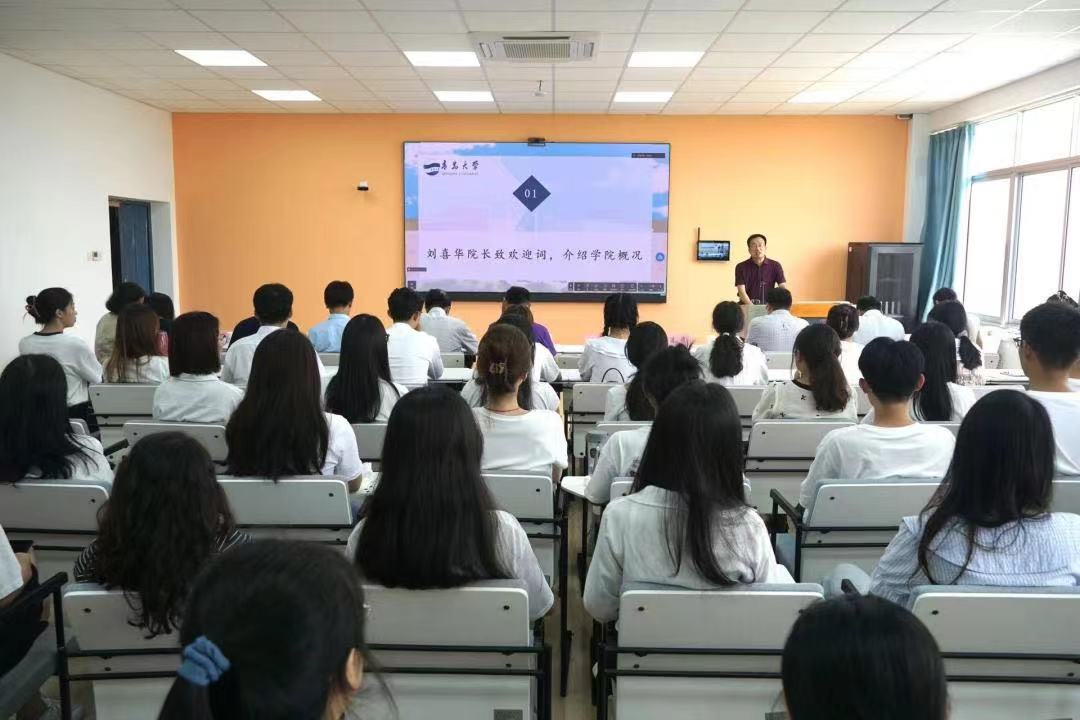 首先,刘喜华院长为新生致欢迎辞,并对学院的历史沿革、发展动态作了简要介绍。他指出,青大350vip8888新葡的京集团成立三十多年来,学科建设、人才培养等各项工作都取得了长足进步,这离不开每一位青大人的共同努力。作为新一代青大人,同学们要以一腔热忱投身学术研究和社会实践,为新时代中国特色社会主义事业建设贡献力量。