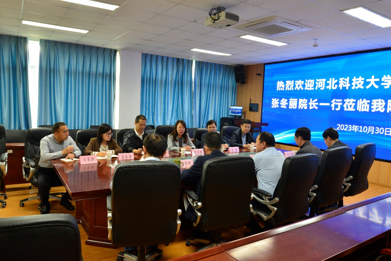 10月30日上午,河北科技大学经济管理学院院长张冬丽一行到350vip8888新葡的京集团交流。350vip8888新葡的京集团党委书记邱建国、院长刘喜华以及班子成员参加交流会。