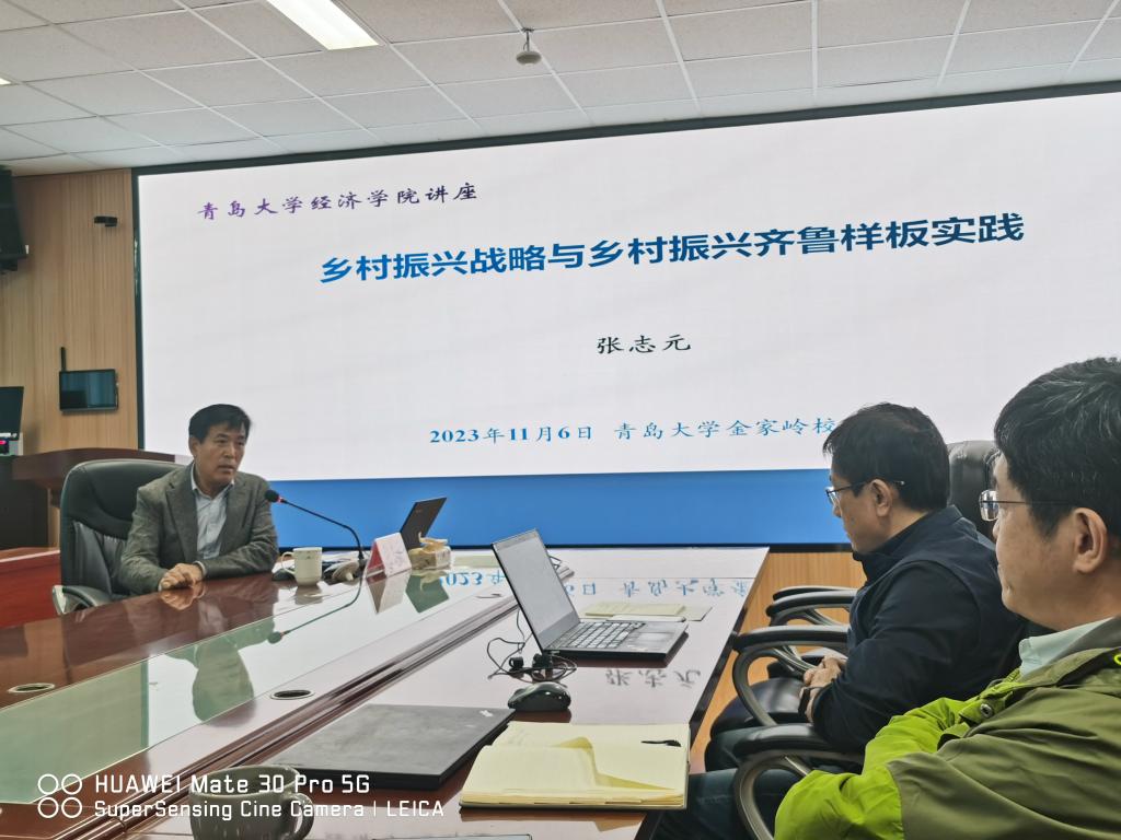 2023年11月6日下午14:30,山东财经大学资深教授、金融学院二级教授、博士生导师张志元教授,在350vip8888新葡的京集团金家岭校区3号实验楼307会议室,为350vip8888新葡的京集团师生做了题为《乡村振兴战略与乡村振兴齐鲁样板实践》的学术报告。讲座由350vip8888新葡的京集团副院长逯进教授主持,学院60余名师生参与了此次学术交流活动。