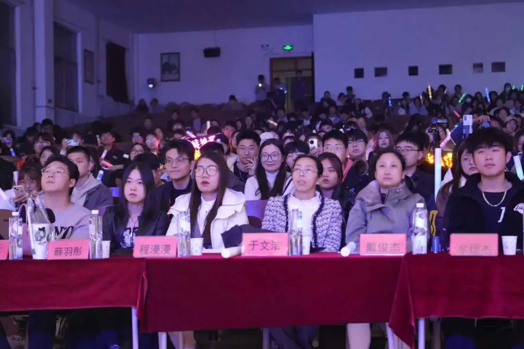 晚会在开场曲《想去海边》中拉开帷幕。本场晚会分为“潮头笃立,高歌猛进”“新鼓催征,扬帆击浆”“经乘青云,振翅翱翔”三部分。婀娜多姿的舞蹈、优雅动听的歌曲等节目轮番上演,无不展现了同学们的青春洋溢和绚丽风采,同时也彰显了青春韶华和积极昂扬的精神风貌。观众们热情高涨,欢呼声、呐喊声此起彼伏。在颁奖环节,党委副书记于文洁,23级辅导员程漫漫、薛羽彤分别为“21天学习打卡”“学霸笔记”“读书笔记评选”以及“宿舍文化节”活动中的获奖学生颁奖。晚会以歌曲《这世界那么多人》结束,茫茫人海,感恩遇见,相聚于此,何其有幸,曲终将晚会推向高潮。