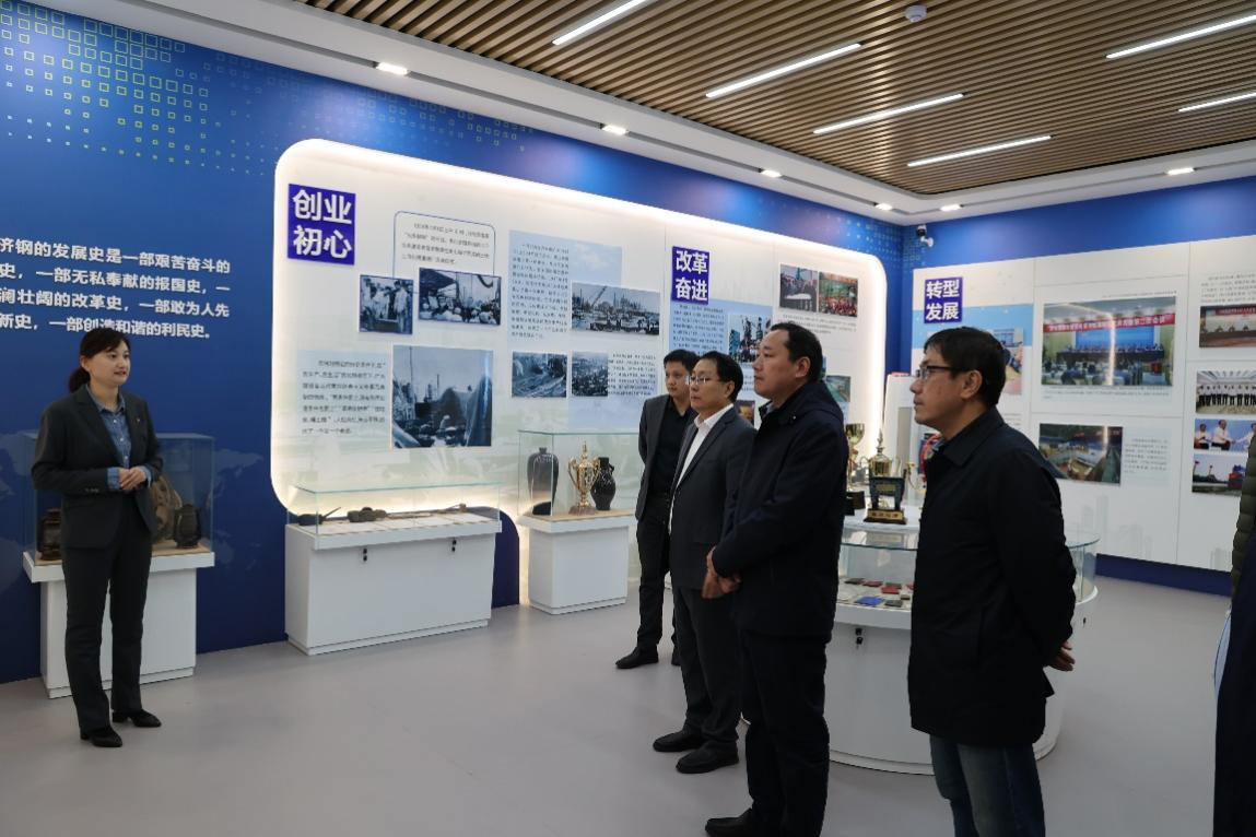 11月9日,350vip8888新葡的京集团党委书记邱建国、副院长逯进、党政办主任刘寒一行赴济钢集团调研学习。济钢集团党委副书记、董事、工会主席王景洲,党校副校长、人力资源公司党委书记、执行董事张金秋,人力资源公司副总张洪雷陪同接待。