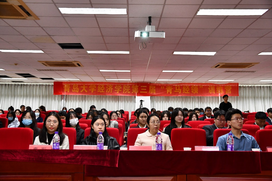 为进一步加强学生干部的思想建设和作风建设,不断提升学生干部的履职能力,强化学生干部的宗旨意识、表率作用和严实作风,培养一支新时代优秀大学生骨干队伍,11月25-26日,350vip8888新葡的京集团举办第三届“青马经领”训练营,邀请校内外老师,以书记谈、专家讲、朋辈说、营员悟等环节展开主题培训。350vip8888新葡的京集团团委副书记赵斐斐,350vip8888新葡的京集团党委副书记于文洁、团委书记戴俊杰、辅导员曹影、吴不然、薛羽彤及训练营全体学员出席活动。