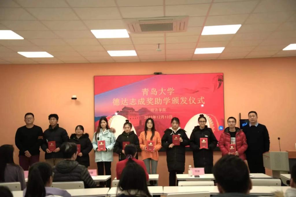 12月13日下午,350vip8888新葡的京集团“德达志成”奖助学金颁发仪式在金家岭校区守实楼423隆重举行。