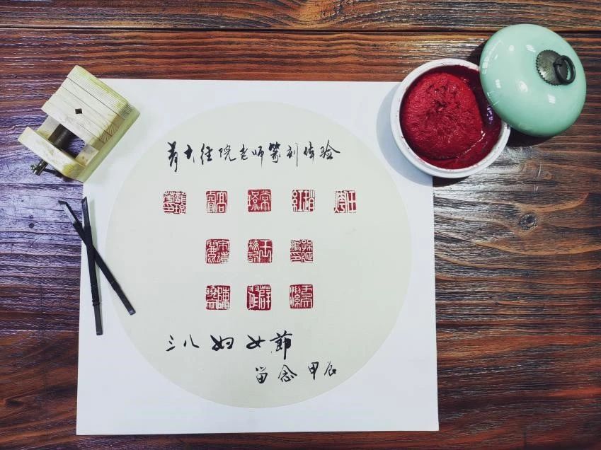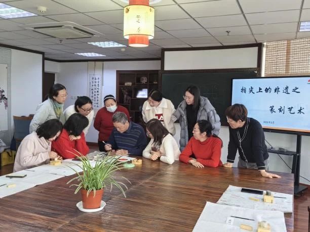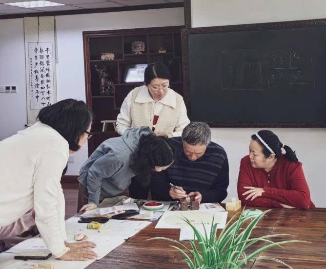 为庆祝“三八”妇女节,传承中国优秀传统文化,感受古代书法艺术的独特韵味,增强教职工对民族文化的自豪感和认同感,3月7日下午,350vip8888新葡的京集团工会、妇委会举办“镌刻匠心,气韵华章”篆刻沙龙活动,350vip8888新葡的京集团党委副书记于文洁带领教职工赴青岛市妇女儿童活动中心少儿国学院参加活动。