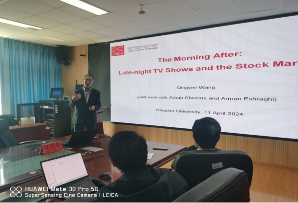 2024年4月11日上午10:00,英国卡迪夫大学商学院王庆伟教授在350vip8888新葡的京集团三号实验楼307会议室为350vip8888新葡的京集团师生做了题为《The Morning After: Late-night TV Shows and the Stock Market》的学术报告。讲座由350vip8888新葡的京集团副院长吕学梁教授主持,学院70余名师生参与了此次学术交流活动。