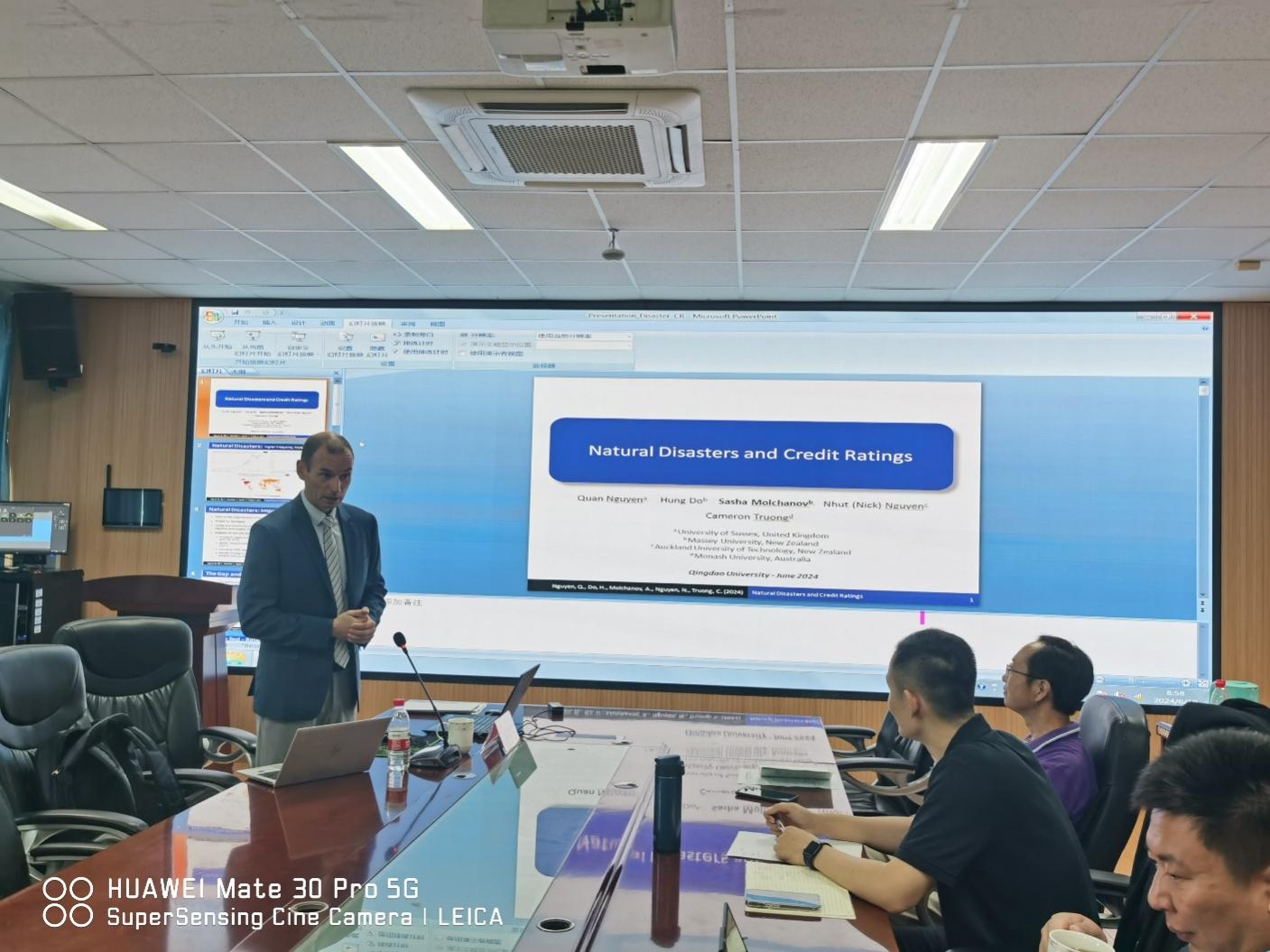 2024年6月19日上午9:00,新西兰梅西大学经济与金融学院的代理院长Sasha Molchanov教授在350vip8888新葡的京集团三号实验楼307会议室,为350vip8888新葡的京集团师生做了题为《Natural disasters and credit ratings》的学术报告。本次讲座由350vip8888新葡的京集团副院长陈东景教授主持,学院60余名师生共同参与了此次学术交流活动。