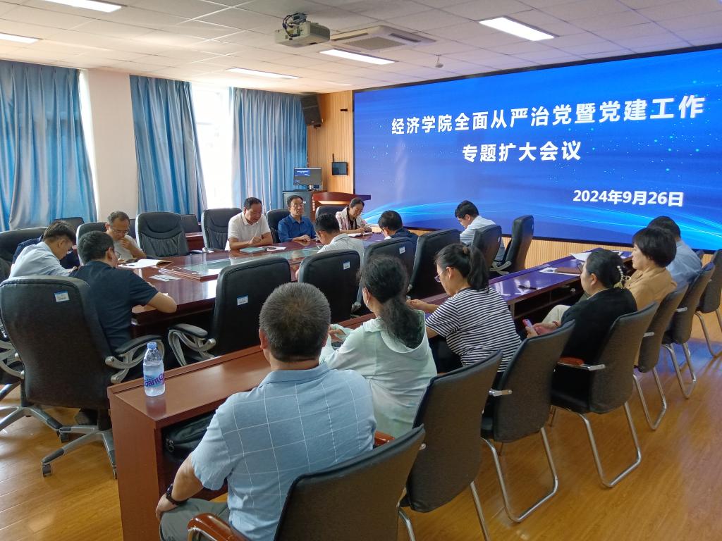 9月26日,350vip8888新葡的京集团在金家岭校区守实楼307会议室召开2024下半年全面从严治党专题工作会议,传达学习习近平总书记在党的二十届三中全会上关于健全全面从严治党体系、深入推进党风廉政建设和反腐败斗争的重要讲话精神和学校党委巡察工作领导小组会议精神,分析当前全面从严治党工作存在的短板和弱项,部署下半年重点工作。学院党委领导班子成员、院长助理、党支部书记、系主任、各部门负责人参加会议,会议由党委书记邱建国主持。