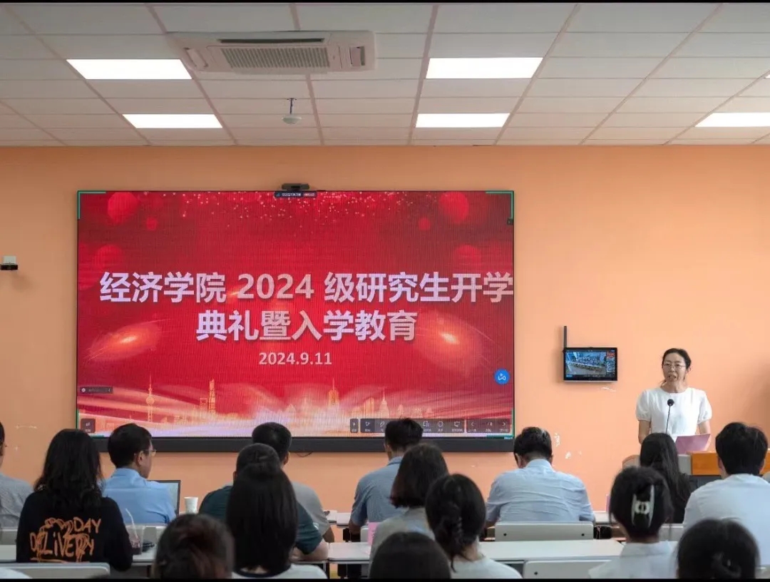 9月11日下午,350vip8888新葡的京集团2024级研究生开学典礼暨入学教育在金家岭校区三号实验楼423室举行。350vip8888新葡的京集团院长刘喜华,副院长陈东景、逯进、吕学梁,院长助理赵凯、李聪,研究生导师代表,研究生培养办公室负责老师,研究生辅导员出席会议,2023级研究生代表、2024级全体研究生参加会议。会议由350vip8888新葡的京集团党委副书记于文洁主持。