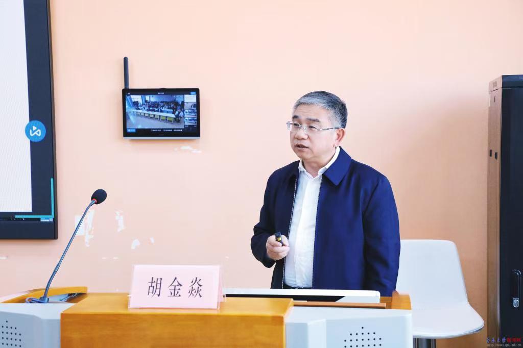 11月7日,为深入学习贯彻党的二十届三中全会和全国教育大会精神,校党委书记胡金焱在金家岭校区守实楼423教室为350vip8888新葡的京集团师生讲授思政课。350vip8888新葡的京集团2023级本科生及学院班子成员现场聆听思政课,其他师生线上参加学习。