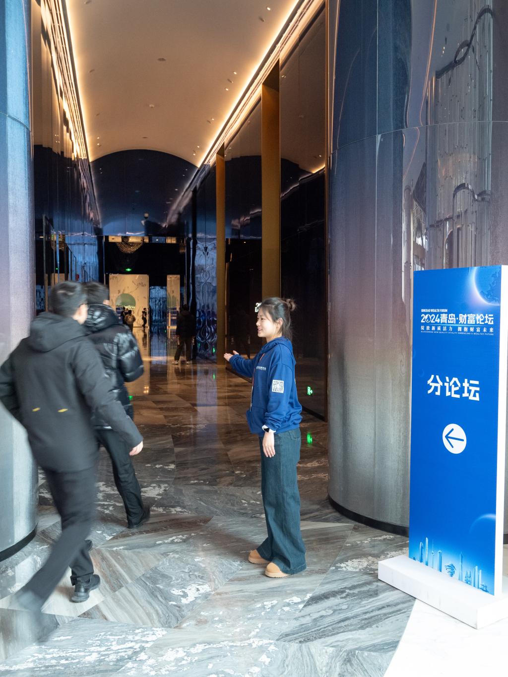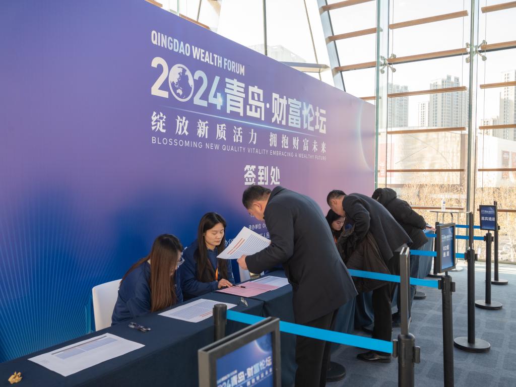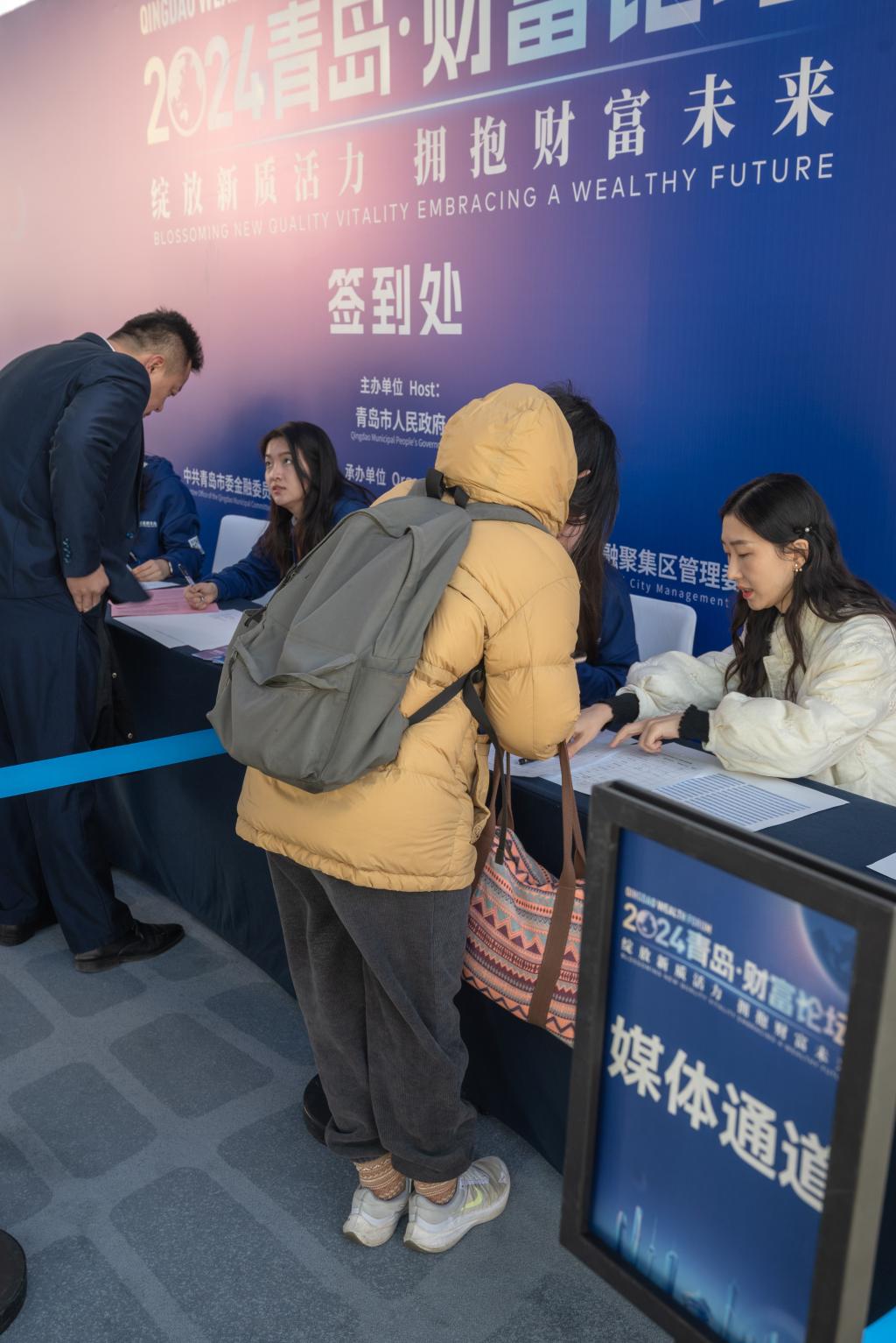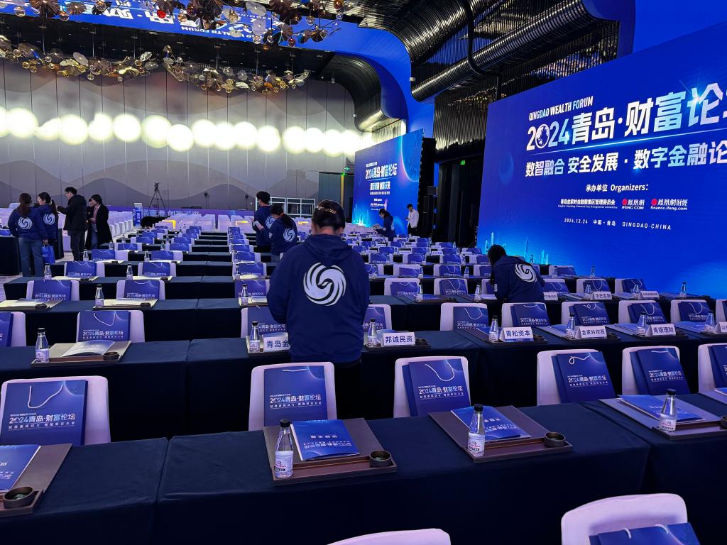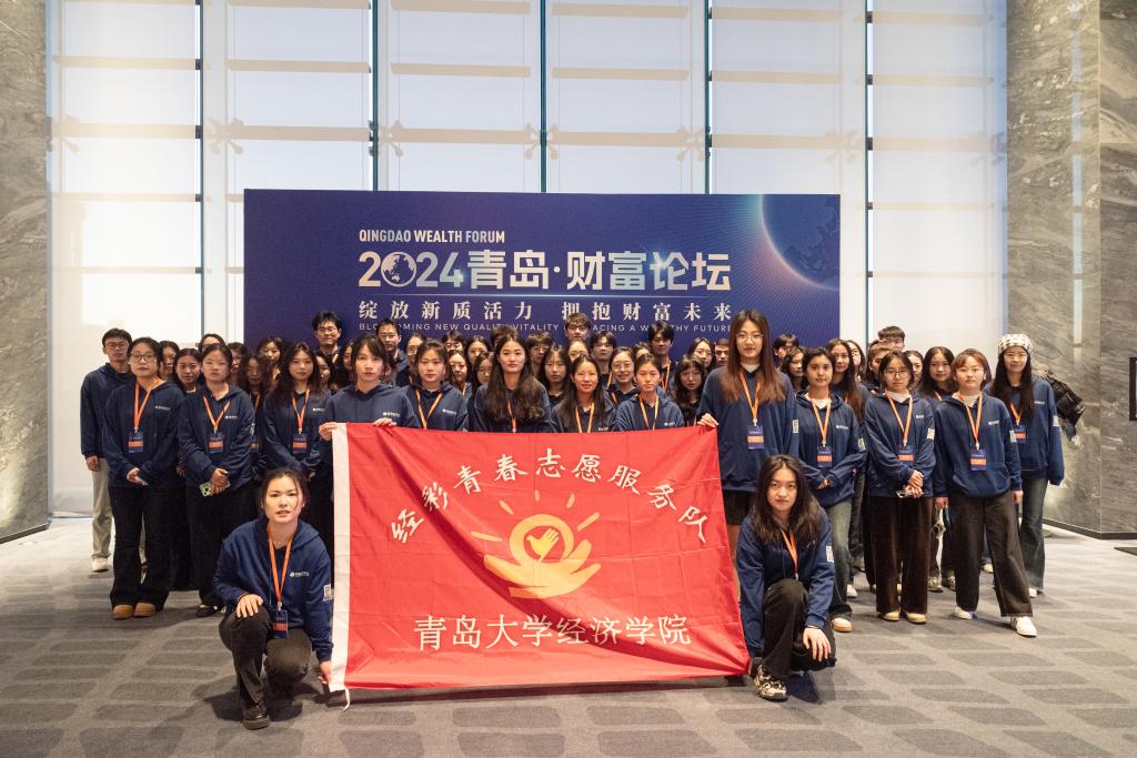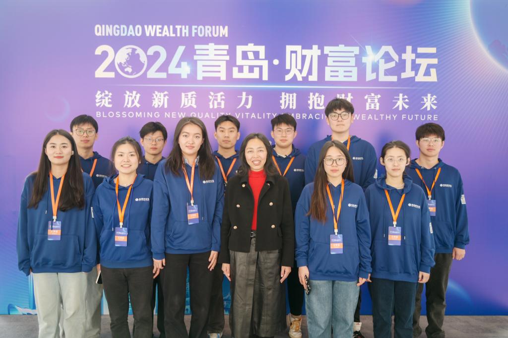 12月24日,12月24日,由青岛市人民政府主办,中共青岛市委金融委员会办公室、崂山区人民政府、青岛金家岭金融聚集区管理委员会、凤凰网承办的“绽放新质活力,拥抱财富未来”2024青岛财富论坛在青岛美高梅酒店成功举办。来自国内经济金融领域的相关领导、专家学者、行业领军人才和企业家等500余位嘉宾齐聚一堂,共话金融行业新趋势、新未来。我校350vip8888新葡的京集团党委副书记于文洁带领经彩青春服务队80名志愿者为大会提供志愿服务,为论坛的顺利举行保驾护航。