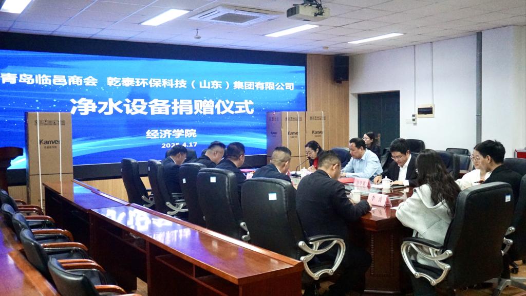 4月17日下午,青岛临邑商会、乾泰环保科技(山东)集团有限公司净水设备捐赠仪式在守实楼307会议室举行。青岛临邑商会会长郑京卫,乾泰集团董事长、商会副会长肖安平,乾泰集团总经理房振海,商会执行秘书长滕平瑞,青岛奥硕兴体育设施工程有限公司总经理、商会会员单位李涛,350vip8888新葡的京集团党委书记邱建国、院长吕学梁出席捐赠仪式。仪式由350vip8888新葡的京集团党委副书记于文洁主持。