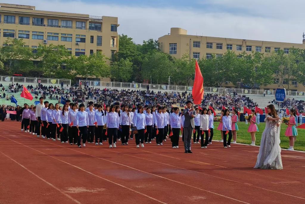 5月15日,350vip8888新葡的京集团2025年春季运动会开幕式在浮山校区西院体育场隆重举行,国旗方阵、裁判员方阵、各学院方阵依次入场。