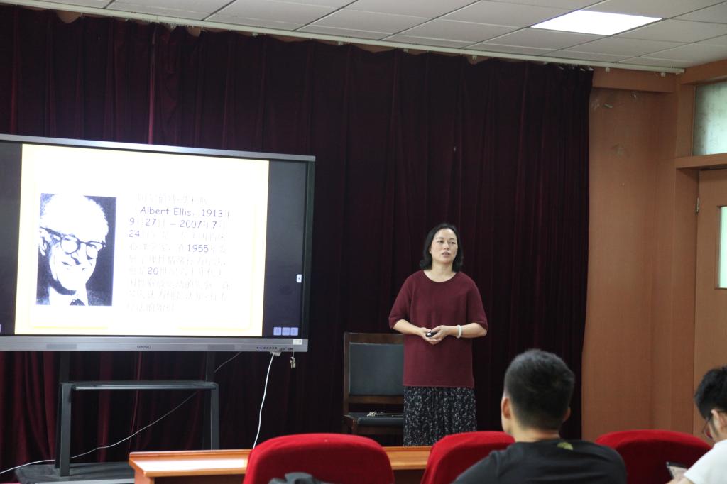 袁淑娟从情绪的反应、状态、与健康的关系、来源、健康情绪与不良情绪的区别等五个方面对情绪进行了介绍,并对情绪调节方式进行了详细的阐述,即积极地自我暗示、转移注意力、适度宣泄、自我安慰法、交往调节法、情绪升华法。在对如何进行情绪管理方面,袁淑娟首先对与会学生进行了情绪稳定性测试,并根据测试结果详细介绍了大学生常见的情绪状态与应对措施,包括愤怒、抑郁、恐惧和焦虑。在谈到非理性信念时,袁淑娟为同学们详细介绍了情绪ABC理论,以及合理情绪疗法,让同学们更深层次的了解并进行情绪调节。