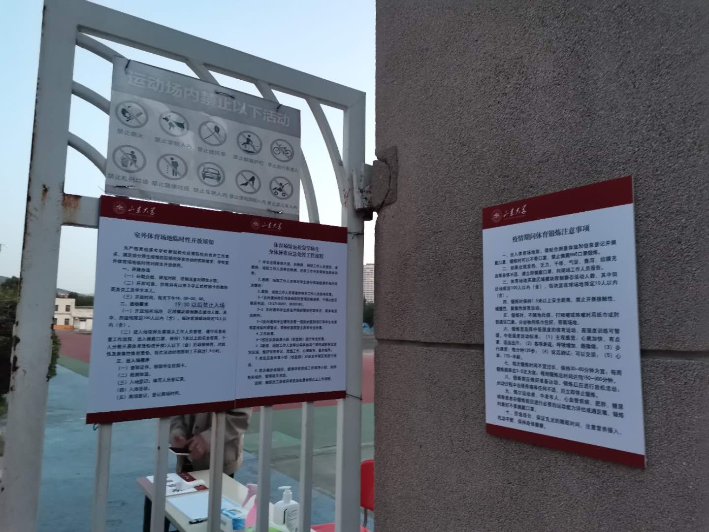 目前,体育场馆开放仍严格控制活动人数。其中,田径场限定100人以内(含),每块篮排球场限定10人以内(含),师生前往锻炼前可提前电话查询体育场馆活动人数,场内活动人数达到上限后,暂停人员进入。体育场馆对进入场地的人员进行严格健康监测管理,师生需接受校园卡查验和体温检测,填写出入人员登记表。