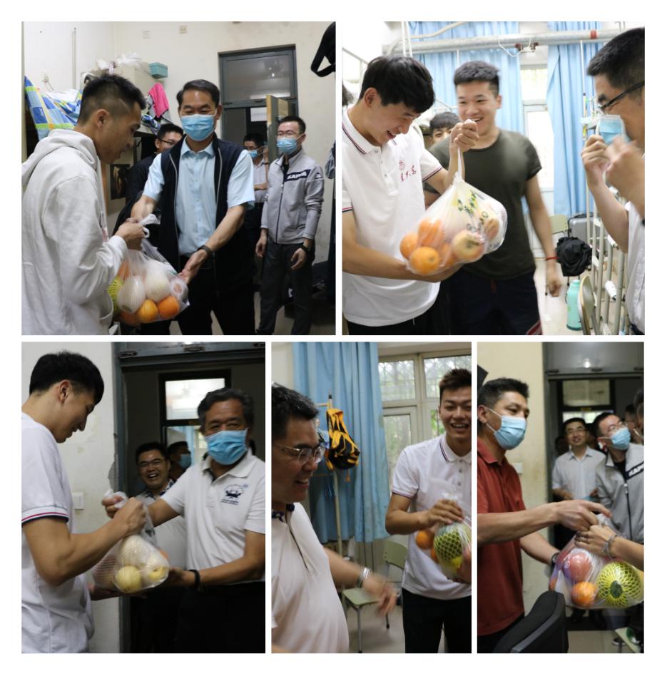 宿舍走访传递师生情,线上线下共叙四年忆。6月17日下午,学院为2020届毕业生举行了毕业合影,随后通过线上和线下相结合的方式,开展了本科毕业生座谈会。学院党委书记、院长孙晋海、党委常务副书记郭学庆、正处级组织员任若强、党委副书记周庆华、社会体育系主任田雨等领导老师与全体毕业生共同参加本次活动,领导老师们为同学们送上殷切祝愿,同学们也纷纷发言,回忆起大学四年的成长与快乐,感恩学校和学院给予的发展平台,表示必将不辜负母校期望,在新的学习和工作岗位上扬帆起航,书写人生美好篇章。座谈会结束后,学院领导、老师们来到毕业生宿舍,为同学们带去了学院特意购置的水果大礼包,因为疫情防控要求,老师和同学们在宿舍交谈仅能寥寥数语,但也让同学们感受到学院暖暖的关心和呵护。6月17日晚,为丰富同学们返校后的宿舍娱乐生活,学院联合英派斯健身公司,推出了“青春不散场,健身动起来——Beat365官方网站2020毕业季线上搏击操沙龙”,通过抖音线上直播,专业教练带领同学们在宿舍一起运动,丰富有趣的线上互动,汗水与笑语的激情碰撞,凝聚了班级力量、升华了同窗友谊。