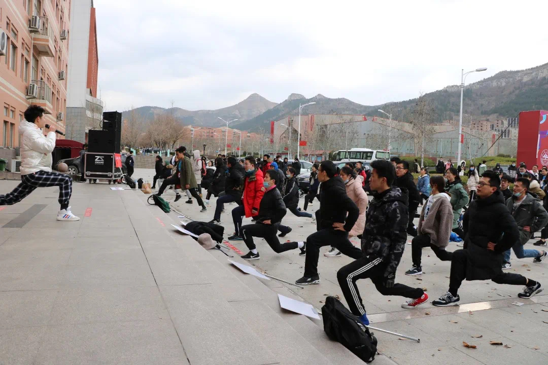上午9点30分,参与长跑接力比赛的老师同学们围聚在指定地点,在动感的音乐节拍下,指导教练带领着参赛者开始进入热身,帮助大家将自己调整至最佳状态。这不仅缓解了比赛开始前紧张的气氛,更在这凛冽的寒风吹袭中,在老师同学们整齐划一的拉伸动作中,彰显着一个个同学们的朝气与热情。