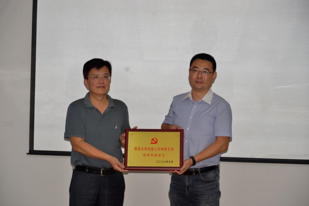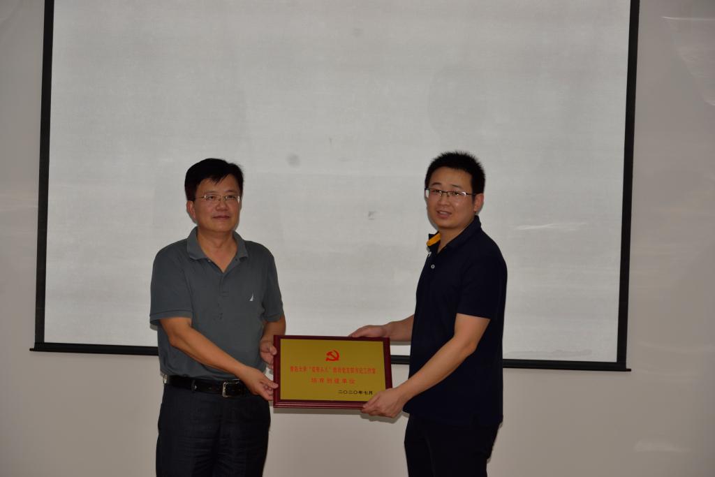 最后,徐龙飞部长向国贸系徐保昌工作室授牌“350vip8888新葡的京集团‘双带头人’教师党支部书记工作室培育创建单位”、向学生第三党支部授牌“350vip8888新葡的京集团党建工作样板支部培育创建单位”。