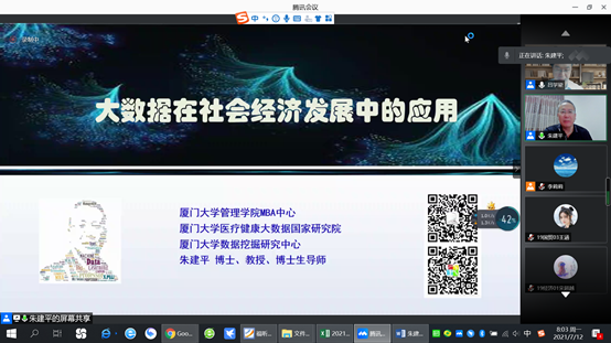 2021年7月12日上午,350vip8888新葡的京集团夏季学期本科生高端讲座第一讲开讲。厦门大学健康医疗大数据研究院副院长朱建平教授受邀进行《大数据在社会经济中的应用》线上讲座报告。此次讲座由350vip8888新葡的京集团副院长吕学梁主持,350vip8888新葡的京集团师生及部分院外同学共400余人积极参与此次交流活动。