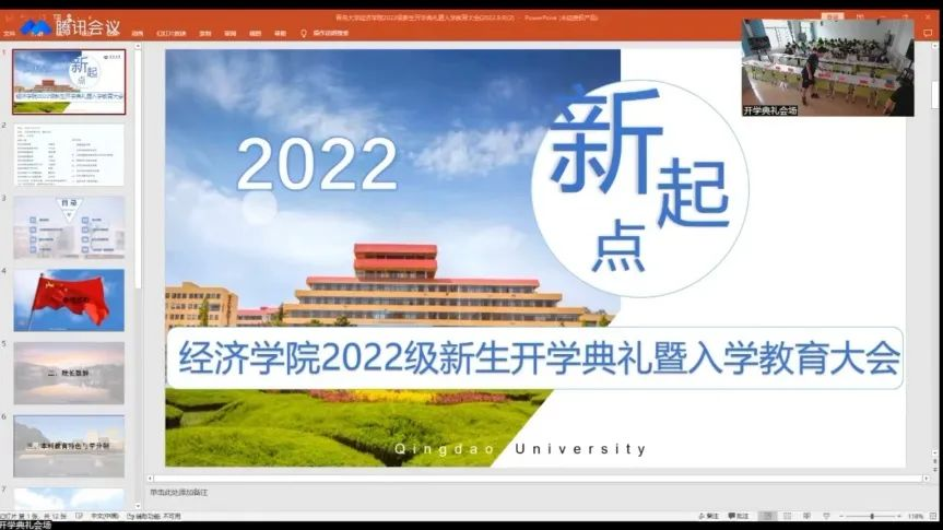 9月9日上午,350vip8888新葡的京集团在金家岭校区三号实验楼420举行了2022级新生开学典礼暨入学教育大会,因疫情防控要求,此次大会以线上线下相结合的形式开展。350vip8888新葡的京集团院长刘喜华,党委副书记于文洁,副院长陈东景、逯进、吕学梁,本科教学办主任孙延鹏,学工办主任任龙,2022级辅导员戴俊杰、吴不然,班主任代表出席会议。