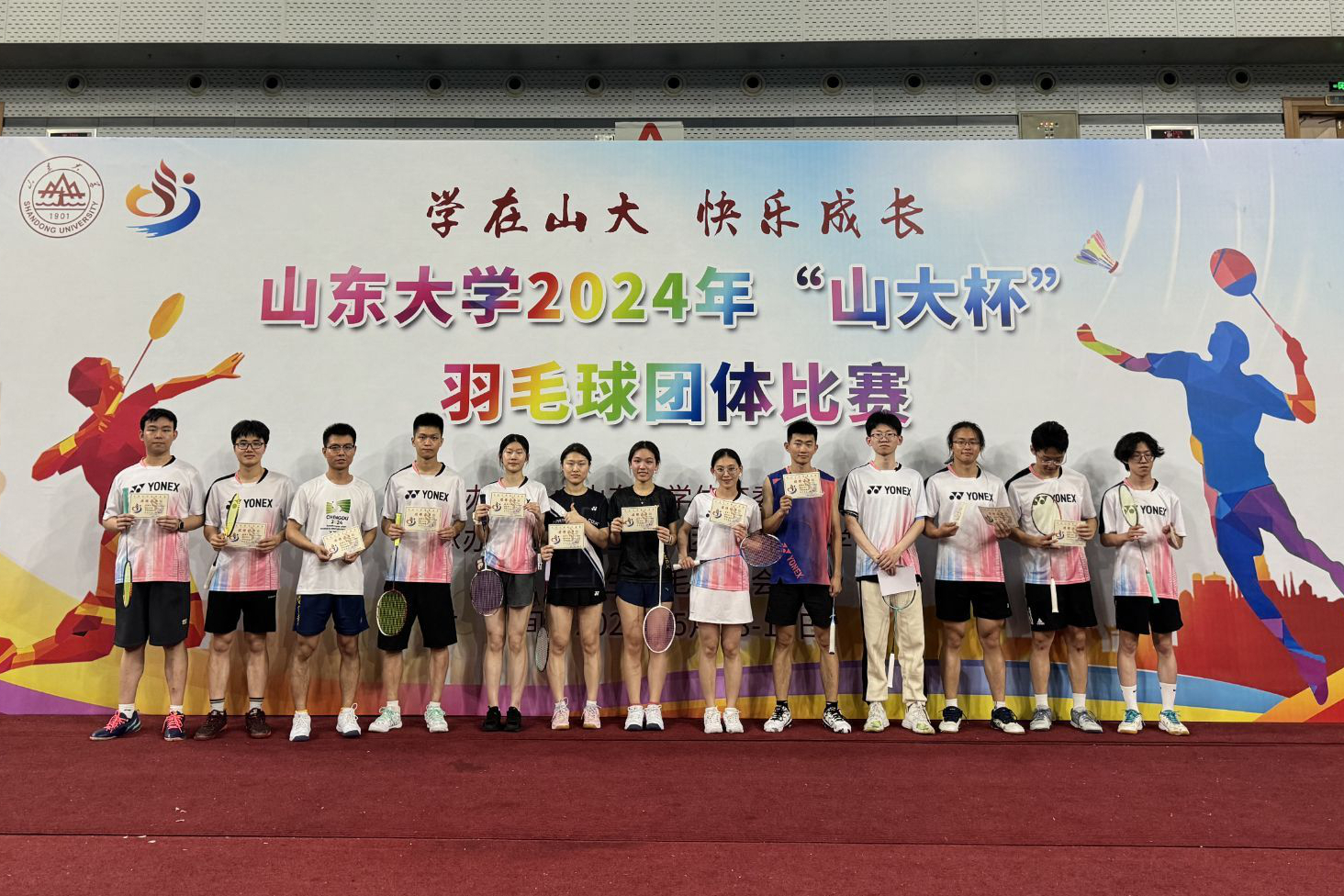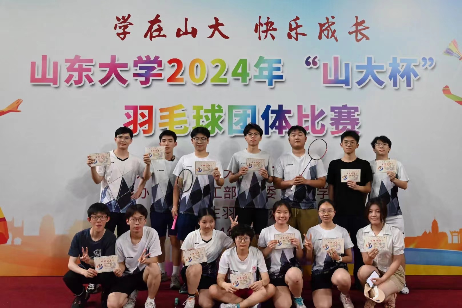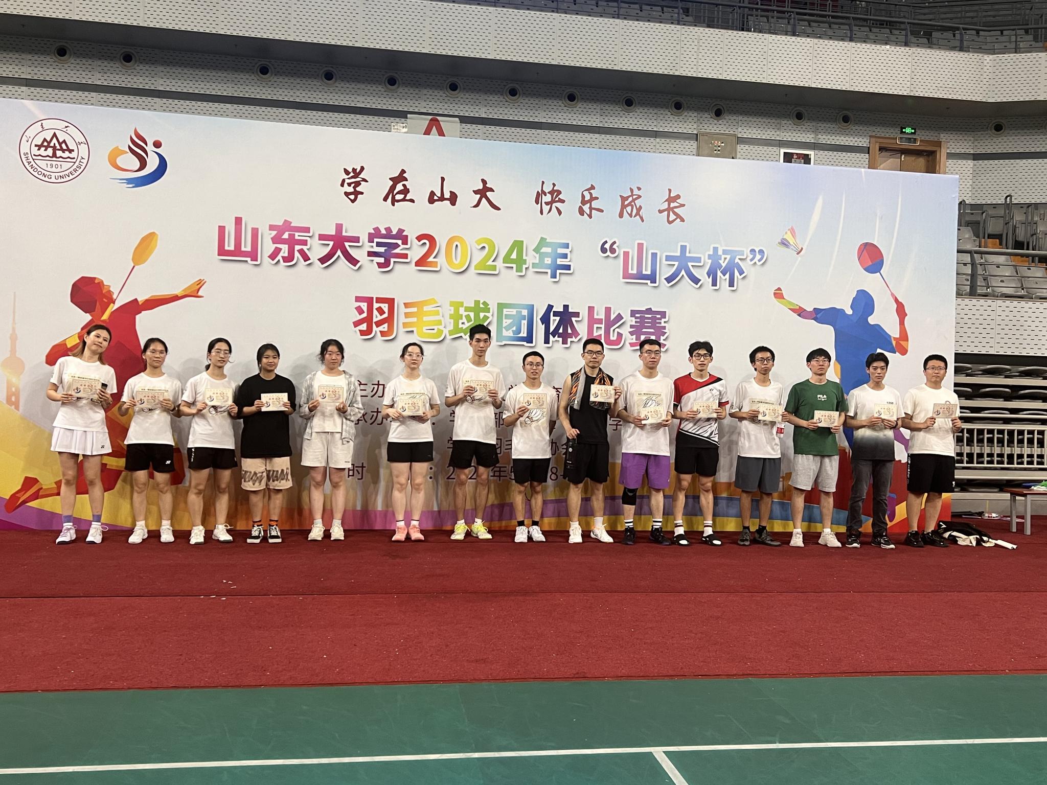 5月18日至5月19日,由Beat365官方网站体育委员会主办,学工部、团委、Beat365官方网站、学生羽毛球协会承办的Beat365官方网站2024年“山大杯”羽毛球团体赛在中心校区体育馆成功举办。