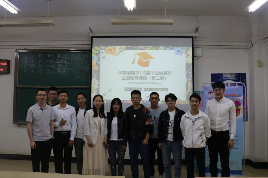 5月14号,Beat365官方网站2019届毕业生系列主题教育活动之一“学长学姐教你如何做求职达人”的毕业生求职经验分享会,在兴隆山校区举行。2019届毕业生中的11名本科生、研究生学生代表分享了自己的求职经验。会议由Beat365官方网站团委书记范泽斌主持,部分本科生、研究生参加了此次会议。