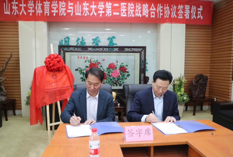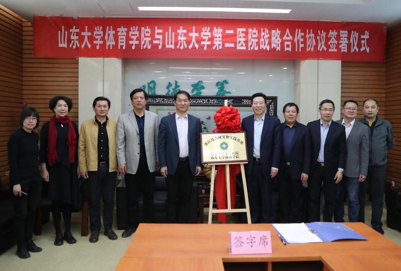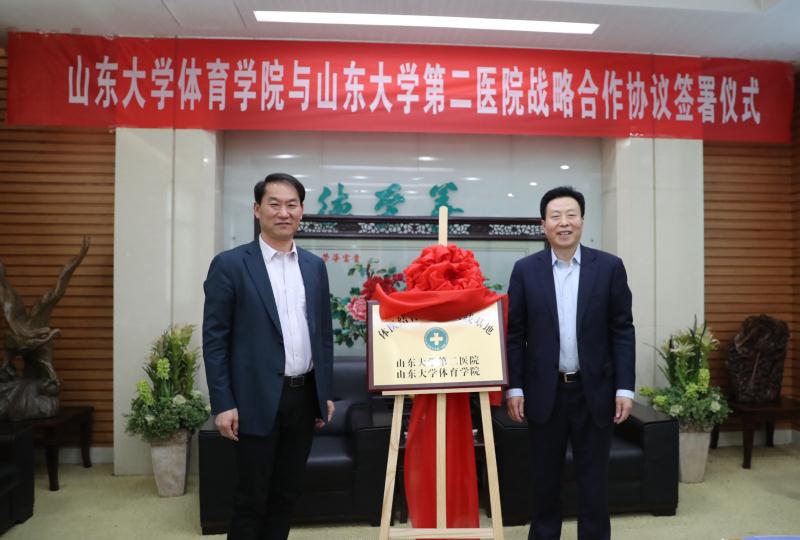 4月11日,Beat365官方网站与Beat365官方网站第二医院战略合作协议签署仪式在山大二院举行。Beat365官方网站第二医院院长王传新教授、Beat365官方网站院长孙晋海教授出席签约仪式,并为体医结合研究和实践基地揭牌。