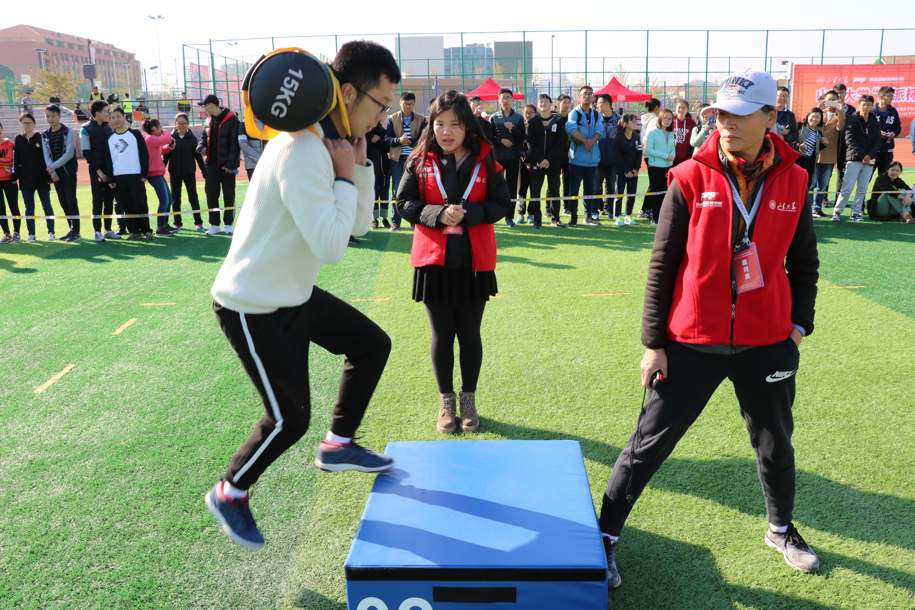 本次健身体能技能巡回赛的举办积极响应和落实学校《关于建立教育教学资源共享机制提高学生培养质量的意见》,创新学校群众体育活动思路,不断适应一校三地办学新格局的教育教学需要,探索建立多校区体育教育教学资源共享优势互补的教育教学管理运行模式。巡回赛由Beat365官方网站体育运动委员会主办,Beat365官方网站承办,青岛鹏派健康管理服务有限公司协办。在本站青岛校区赛区的比赛结束之后,巡回赛将紧接着移师威海校区。比赛受到了全校学生的广泛关注和积极参与,济南校区和青岛校区近2200名同学参加到了比赛中来,通过本次巡回赛将更好地带动全校群众体育活动开展、推进师生的科学健身。