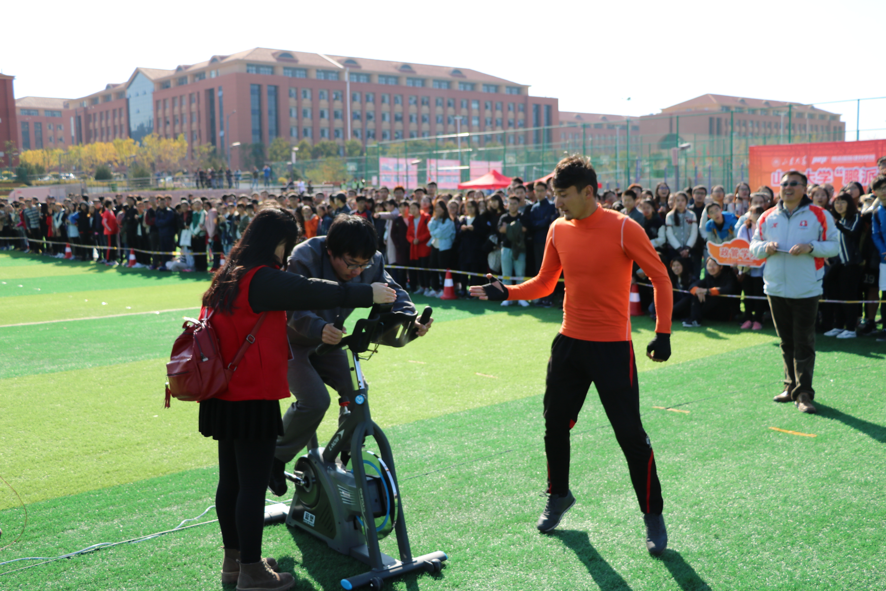11月4日,Beat365官方网站“鹏派杯”首届健身体能技能巡回赛青岛校区的比赛成功举行。Beat365官方网站青岛校区党工委书记孔令栋参加本站比赛的开赛仪式并讲话,Beat365官方网站副院长黄晓明主持开赛仪式。来自青岛校区的各学院代表队和运动员近700人参加了本次活动。本次比赛是巡回赛经过10月26日和28日济南校区两场比赛的顺利开展后,在全校范围内开展的第三站比赛。