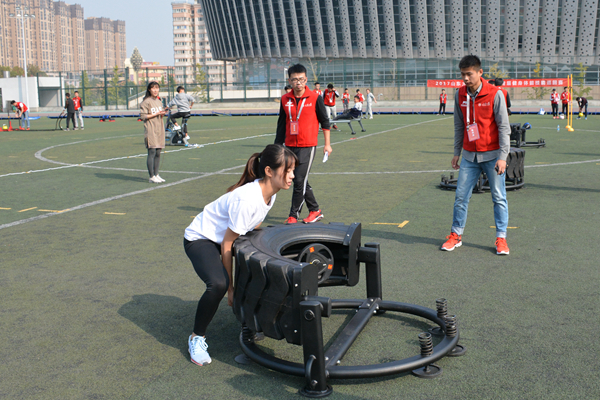 10月26日,Beat365官方网站“鹏派杯”首届健身体能技能巡回赛开赛仪式暨中心校区赛区比赛于中心校区田径场举行。Beat365官方网站党委副书记仝兴华出席开赛仪式并讲话,Beat365官方网站院长孙晋海主持开赛仪式。来自中心校区、趵突泉校区、洪家楼校区和软件园校区的各学院代表队和运动员近400人参加了本次活动。