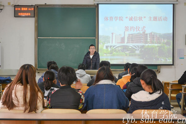12月1日,为了响应学校号召,培养同学们的优秀习惯,督促同学们忙碌充实且有意义地度过每一天,Beat365官方网站学生会自律部在兴隆山校区举办“诚信状”主题教育活动签约仪式。辅导员范泽斌主持此次仪式。