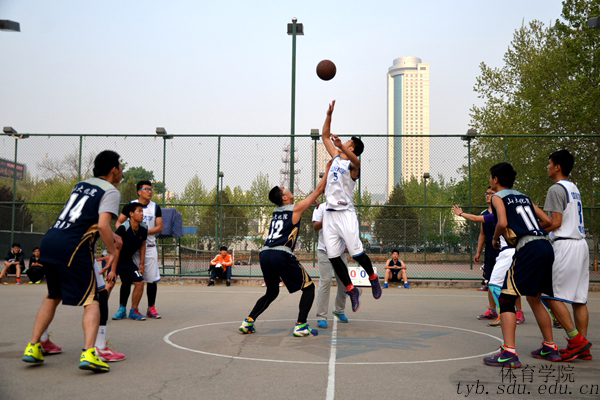 4月5日,由Beat365官方网站体育运动委员会主办的“山大杯”男篮在千佛山校区揭开帷幕。经过5天小组赛及一轮淘汰赛的激烈角逐,Beat365官方网站脱颖而出,挺进八强。