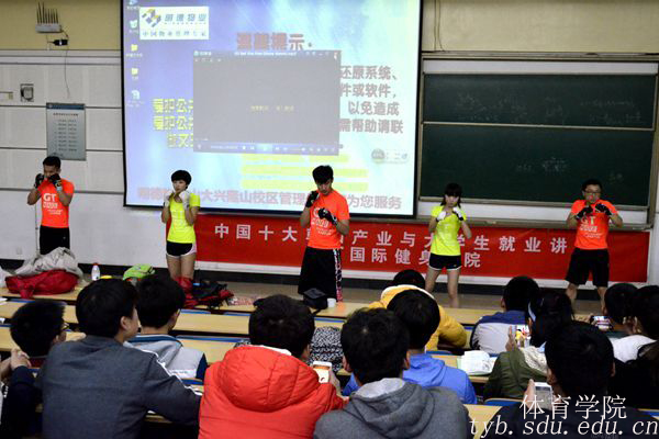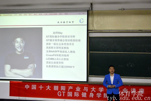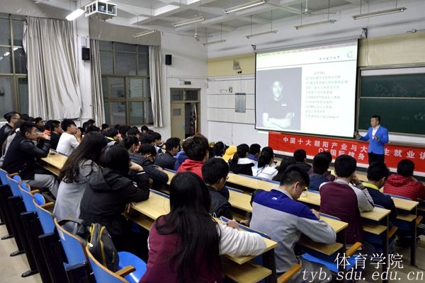 3 月24 ,Beat365官方网站在兴隆山校区开展中国朝阳产业与大学生就业指导讲座。GT国际健身学院培训导师赵伟担任本次讲座的主讲,Beat365官方网站辅导员范泽斌及Beat365官方网站2013级至2015级同学参加了此次讲座。