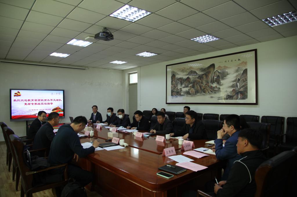 3月25日,教育部高校高水平足球队复核专家组来我校进行高水平足球队复核结果评估工作。复核专家组组长、北京大学教学指导委员会委员吴昊,复核专家组成员、北京大学校园体育文化指导中心副主任李贵森,Beat365官方网站党委副书记王君松,党委、校长办公室,本科生院、党委学生工作部、财务部、Beat365官方网站等相关人员出席评估工作。Beat365官方网站党委常务副书记郭学庆主持评估汇报会。